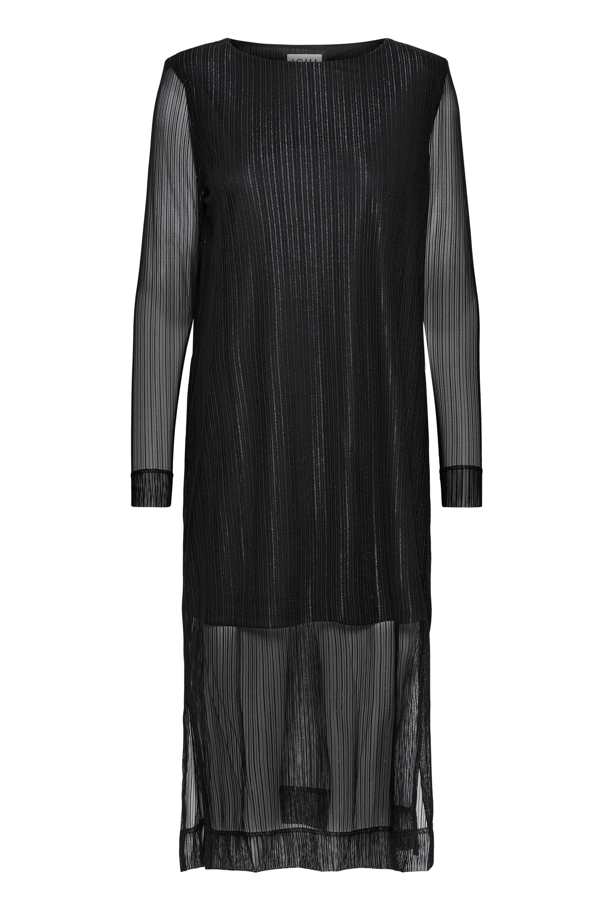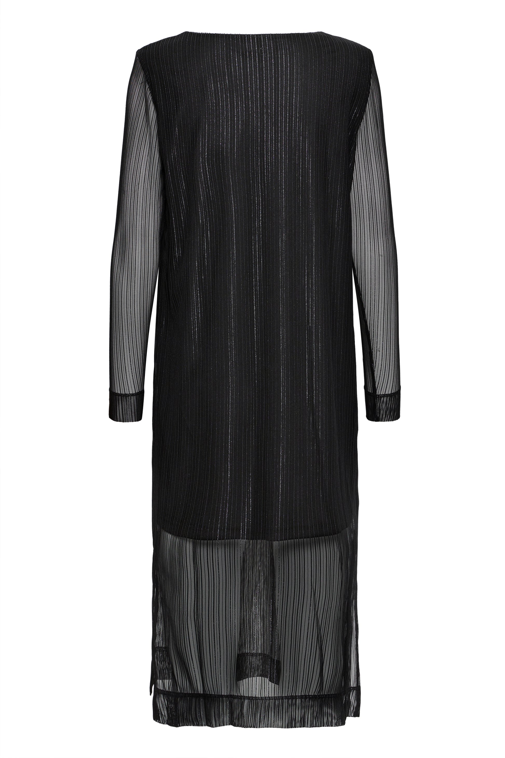 Kjole fra Ichi. Denne kjole har et enkelt men feminint design. Kjolen har transparente ærmer og fra knæene og ned. Den har en sort farve, som går til alt!