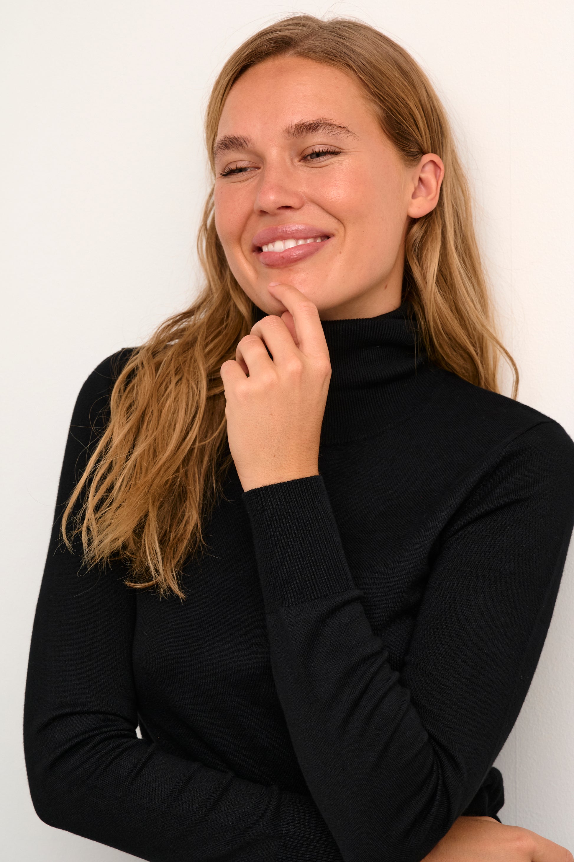 Dame rullekrave trøje med slank pasform og lange ærmer samt høj halsudskæring. Blød strik og tidløst snit egner sig til både kontor og hverdag.