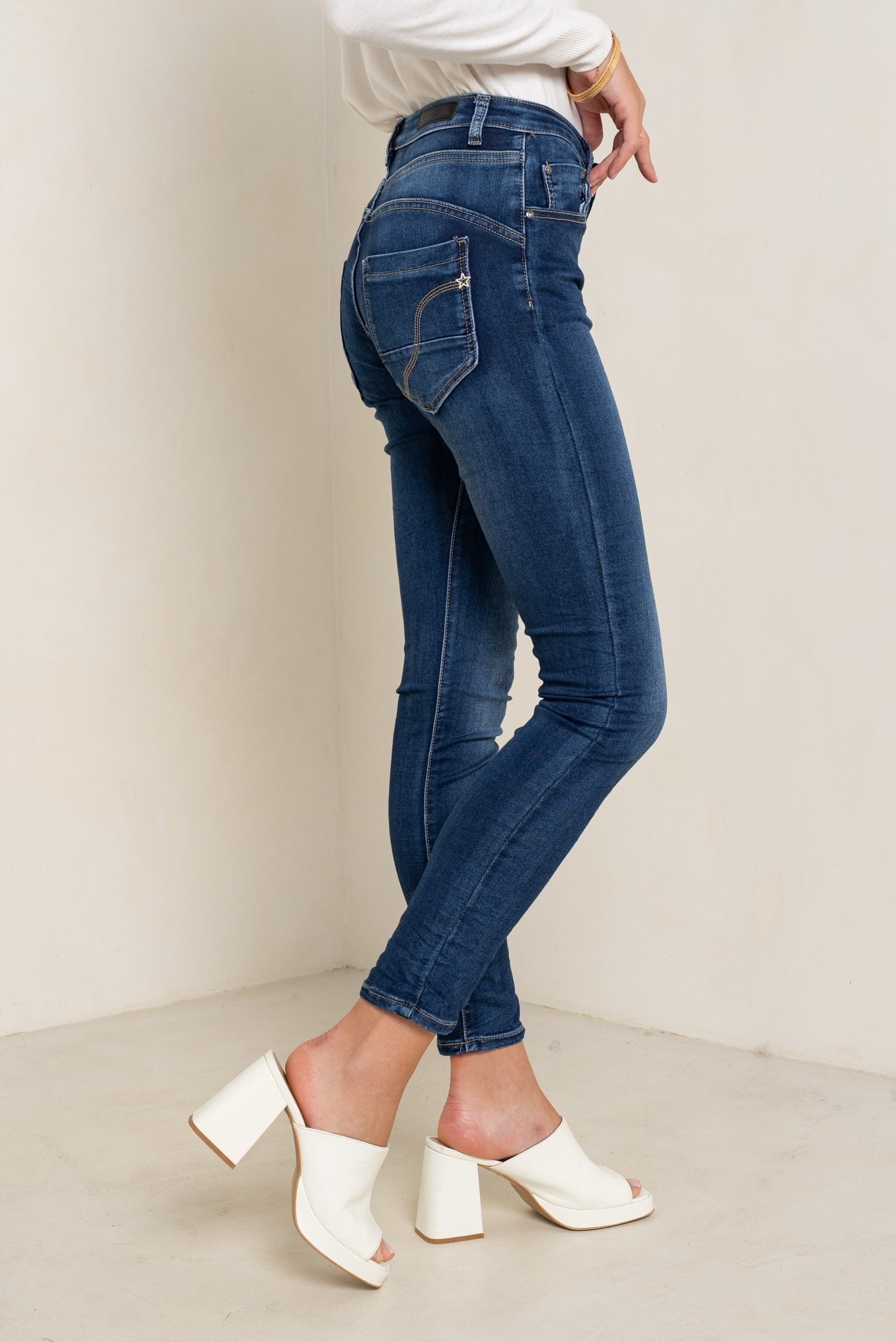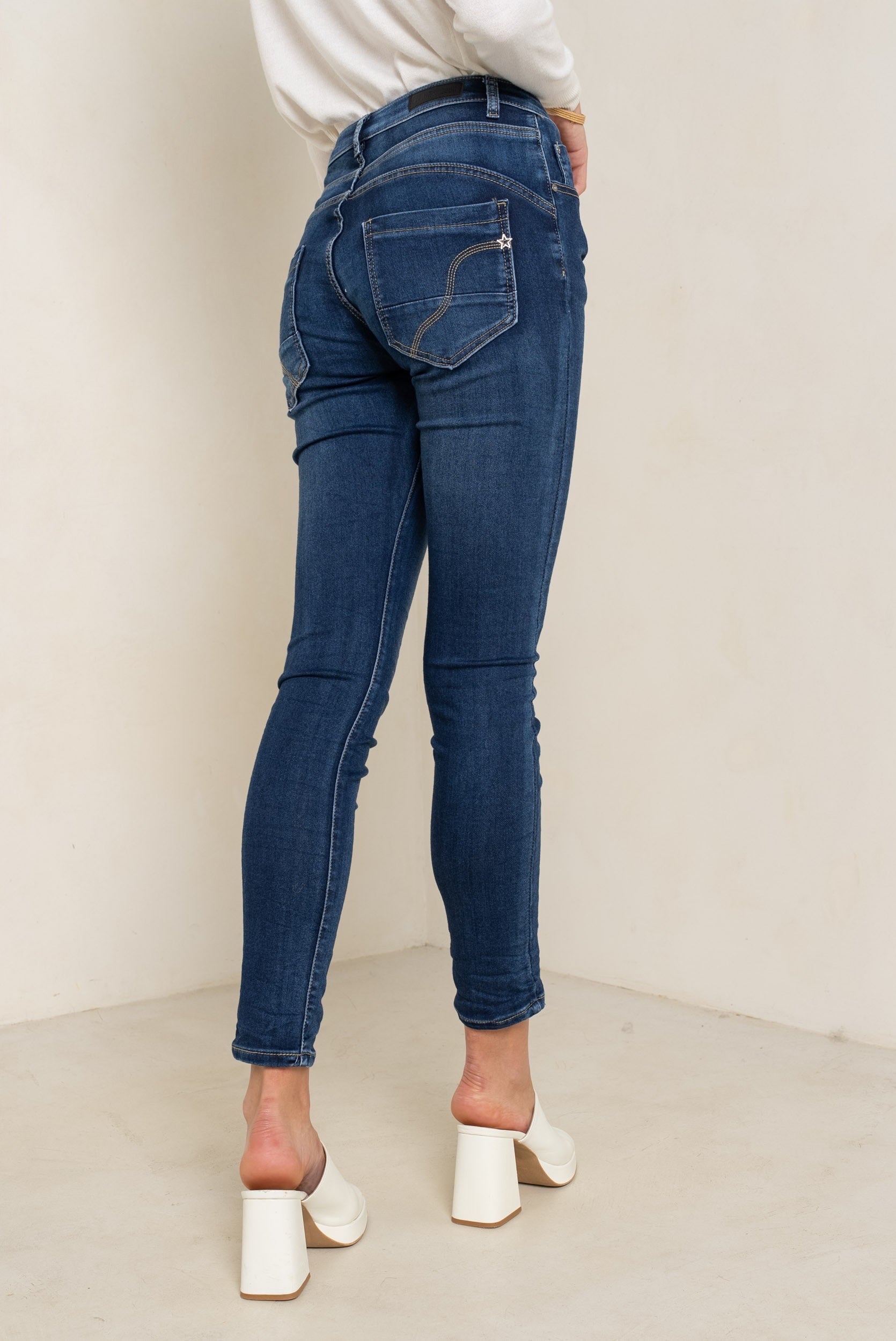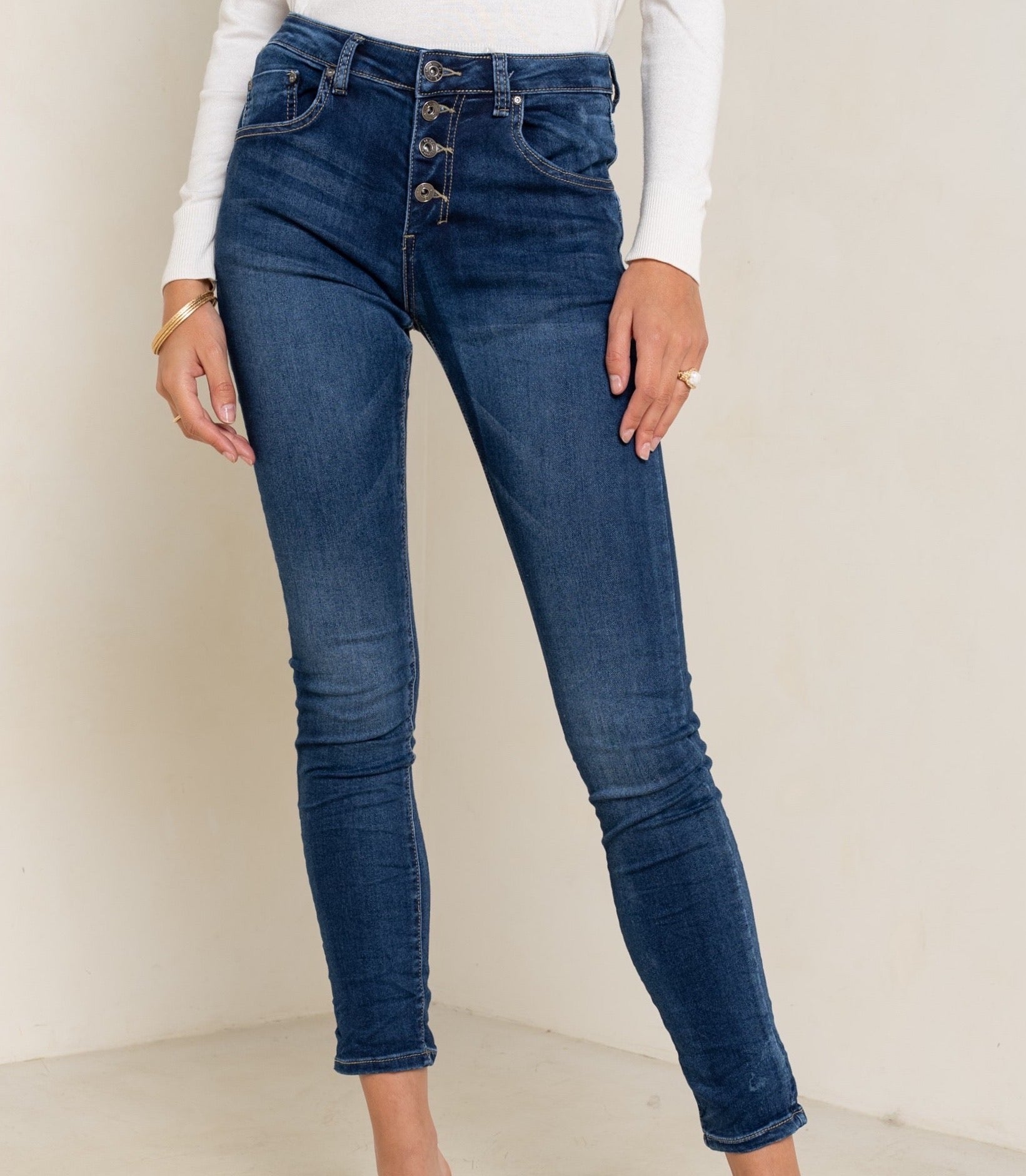 PdJ Bukser , mørke blå - stræk og 4 knappe - 90109-E
