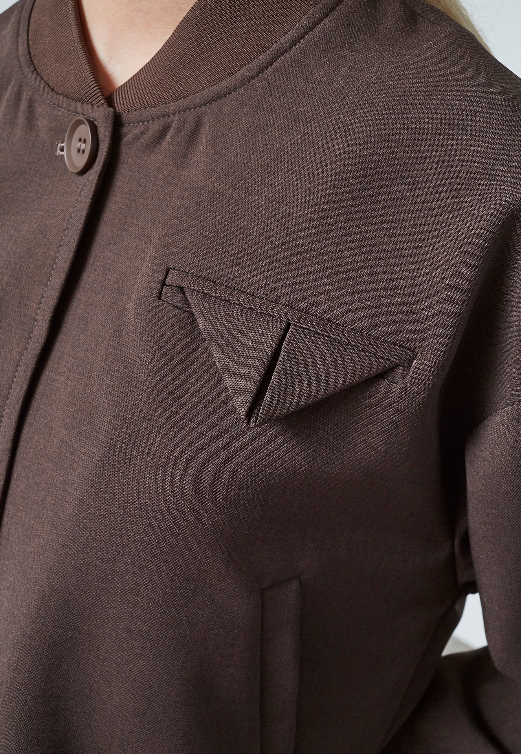 GREAT-JA er en kort jakke med lange ærmer og ribkant ved hals, ærmer og bund. Jakken har en knaplukning foran samt en brystlomme med klap og en sidelomme. Modellen har en str. S på