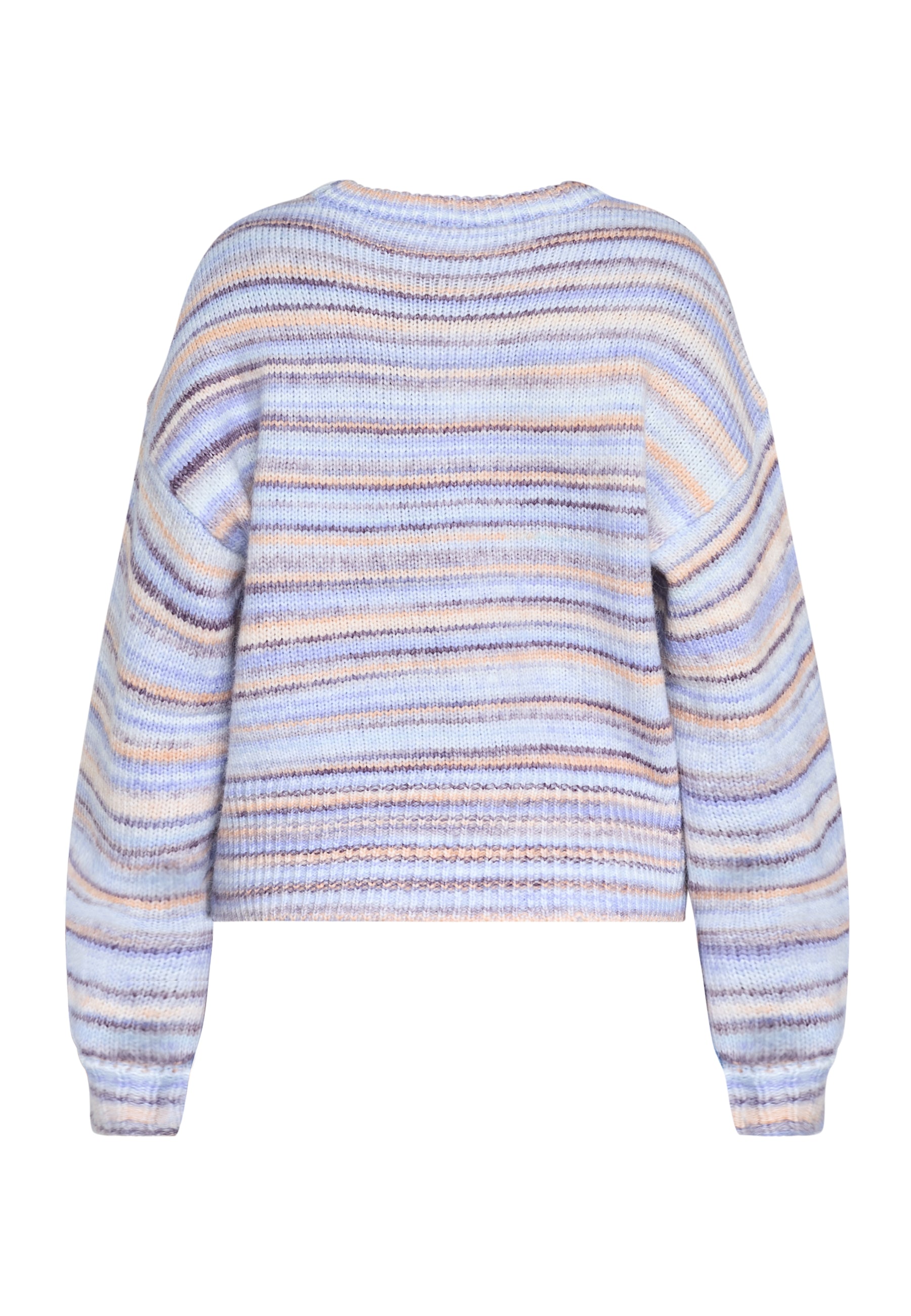 HELNA-PU er en stribet striktrøje i et mélange-look med en rund halsudskæring. Den har en afslappet, overdimensioneret pasform med ekstra lange ærmer og et let cropped snit. Modellen har en str. S på.